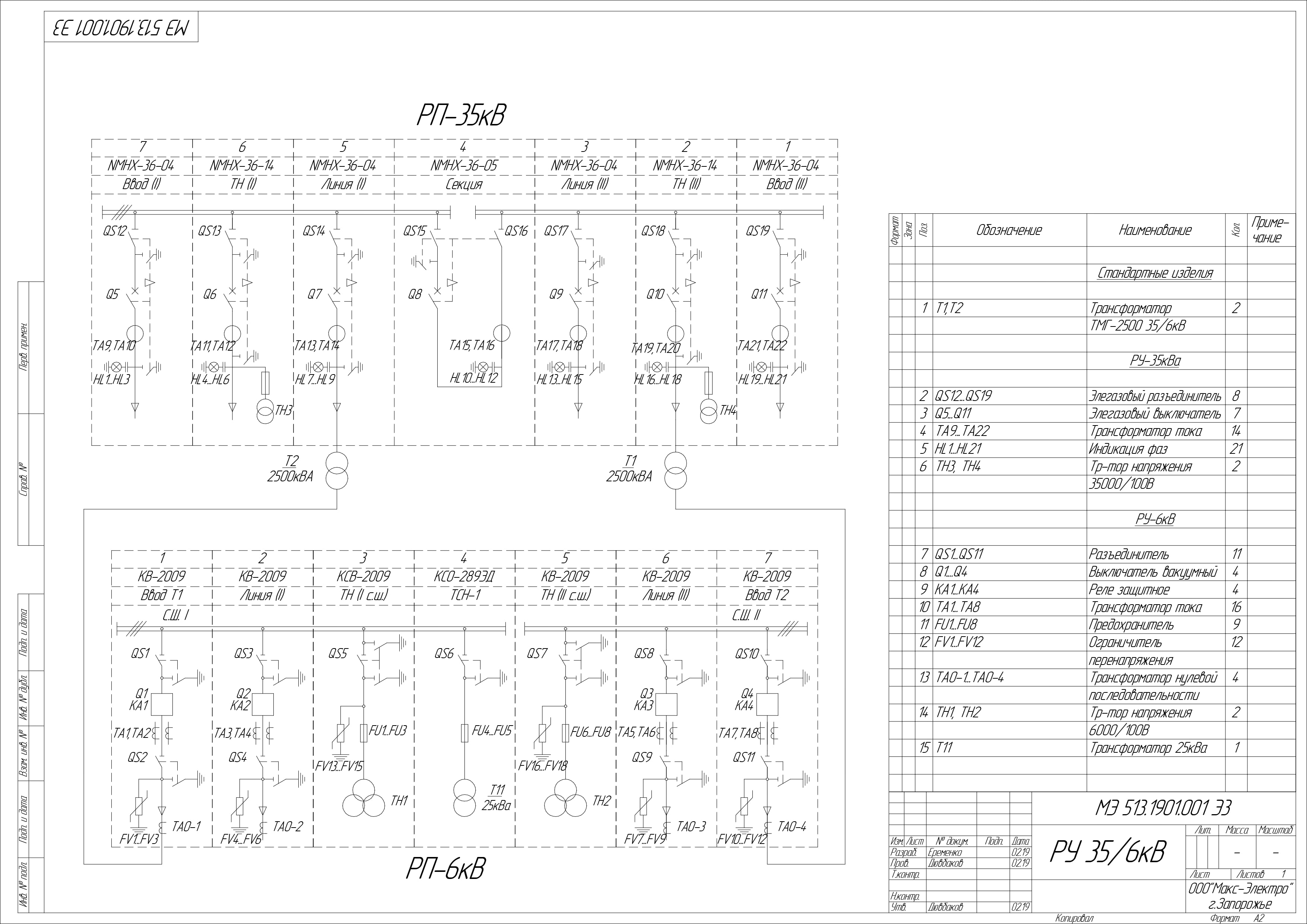 Образец однолинейной схемы
