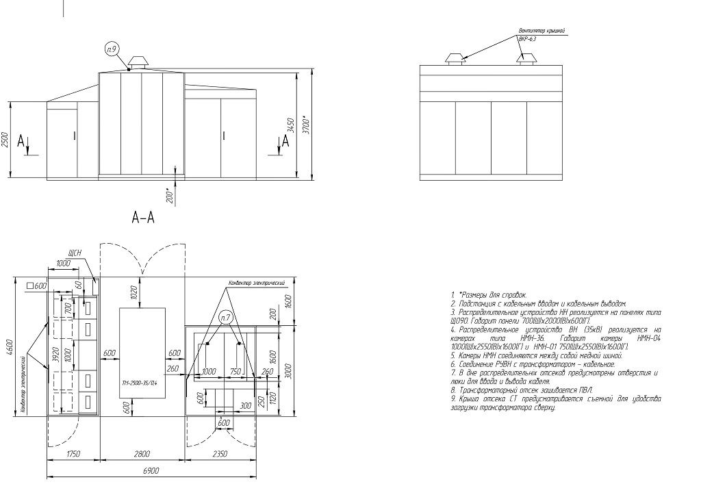 КТП-35/0,4 кВ представляет собой мобильное блок-контейнерное здание полной заводской готовности, состоящее из отсеков: