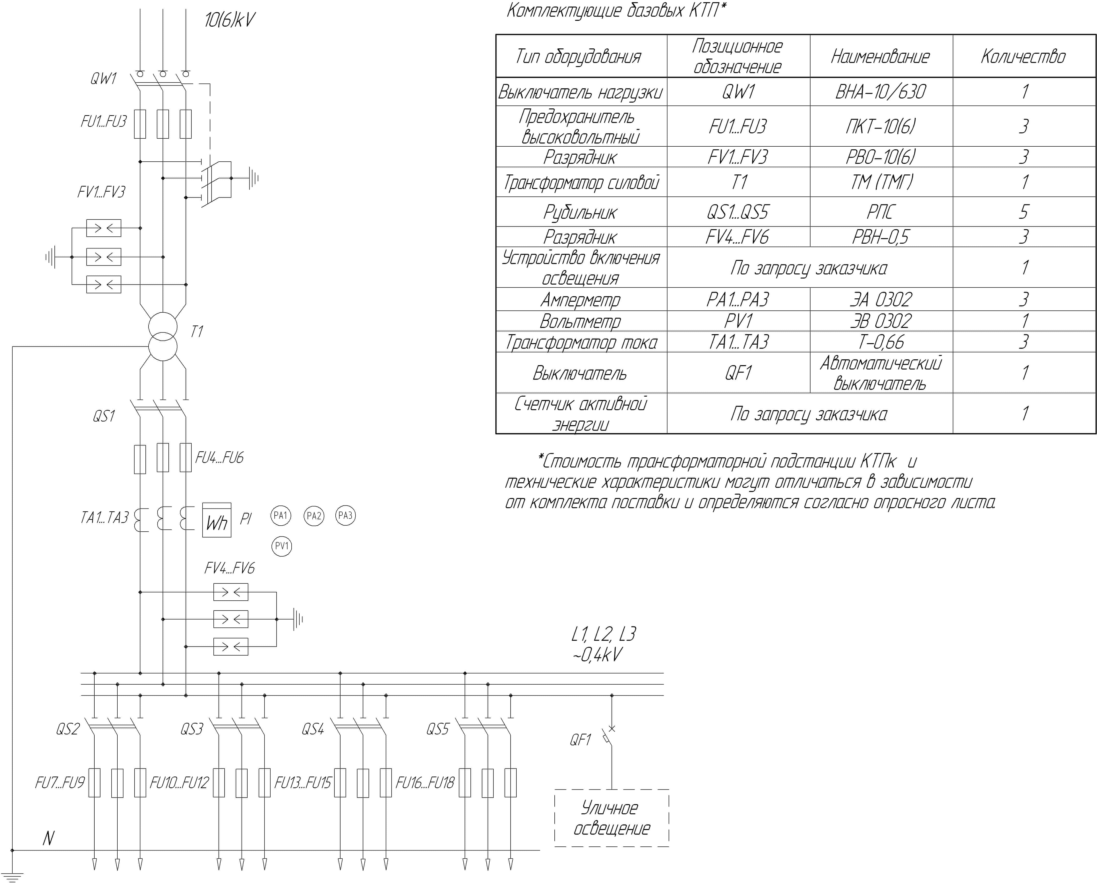 Подстанция КТПК комплектуется силовым трансформатором, мощность и класс напряжения которого соответствует обозначению КТПк.