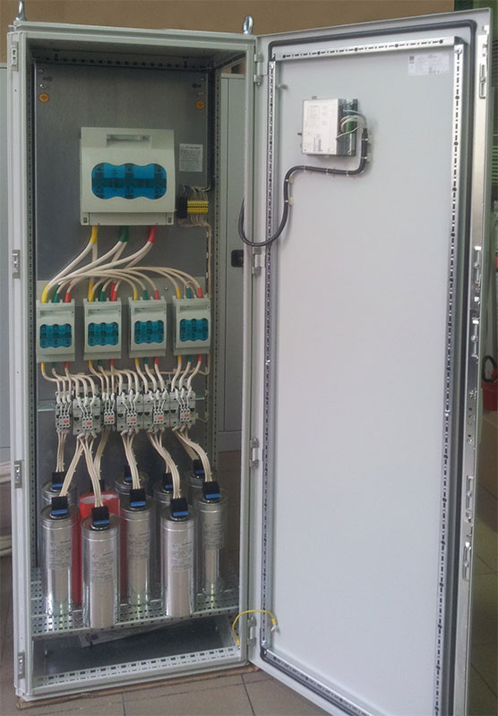 Конденсаторная установка предназначена для компенсации реактивной мощности и повышения коэффициента мощности электроустановок промышленных предприятий и распределительных сетей и для автоматического регулирования реактивной мощности в сетях напряжением 0.4 кВ частоты 50 Гц. Конденсаторные установки предназначены для работы в закрытых помещениях либо на отрыктых площадках (в зависимости от исполнения согласно ГОСТ 15150-69) в следующих условиях: