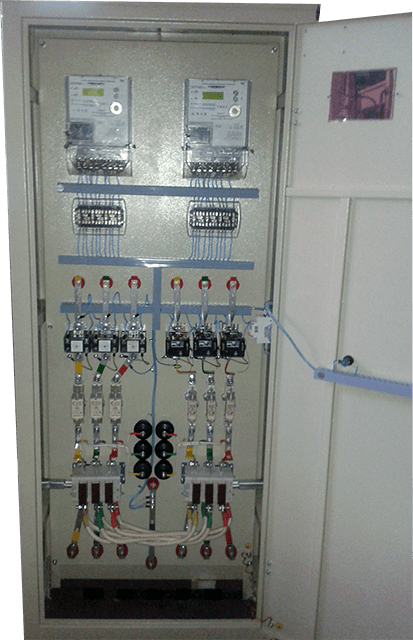 Вводно-распределительныеустройства ВРУ могут комплектоваться как индукционными приборами учета энергии, так и электронными, которые могут использоваться в качестве датчика приращения энергии для работы в автоматизированных системах контроля и учета энергии (АСКУЭ БП) и телеизмерения мощности.